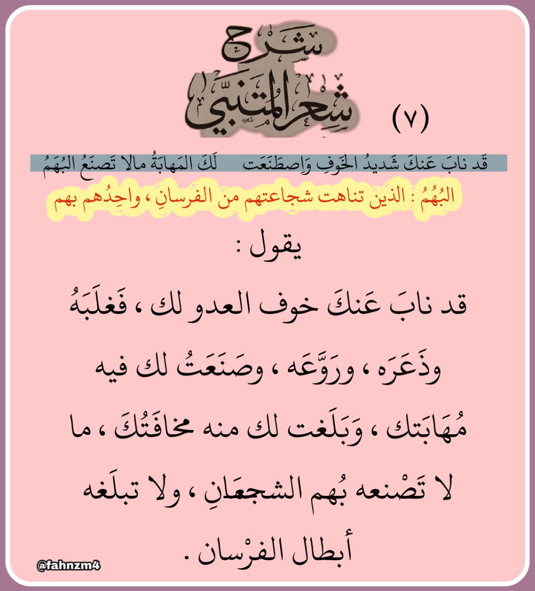 O Xrhsths من كل بستان Sto Twitter ٧ المتنبي يمدح سيف الدولة ق د ناب ع نك ش ديد الخ وف و ا صط ن ع ت ل ك الم هاب ة مالا ت صن ع الب ه م