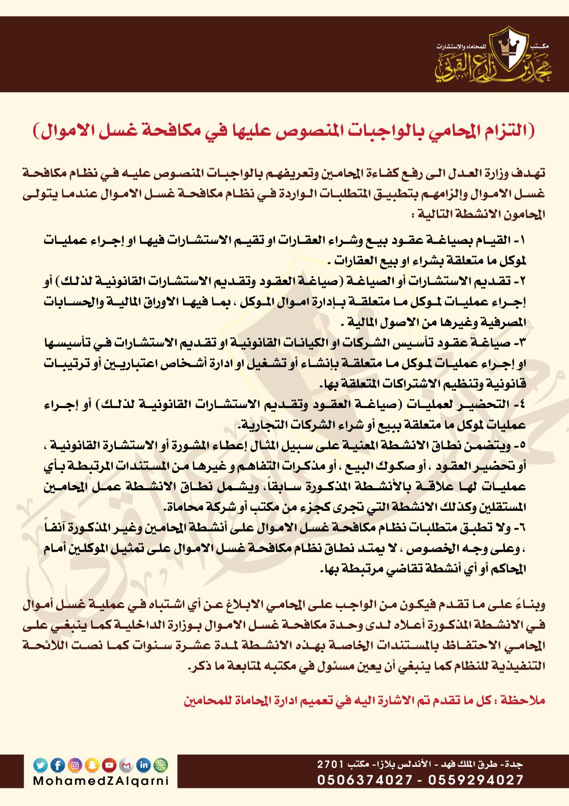المحامي محمد القرني Auf Twitter الزام المحامين بالتبليغ على قضايا غسل الاموال