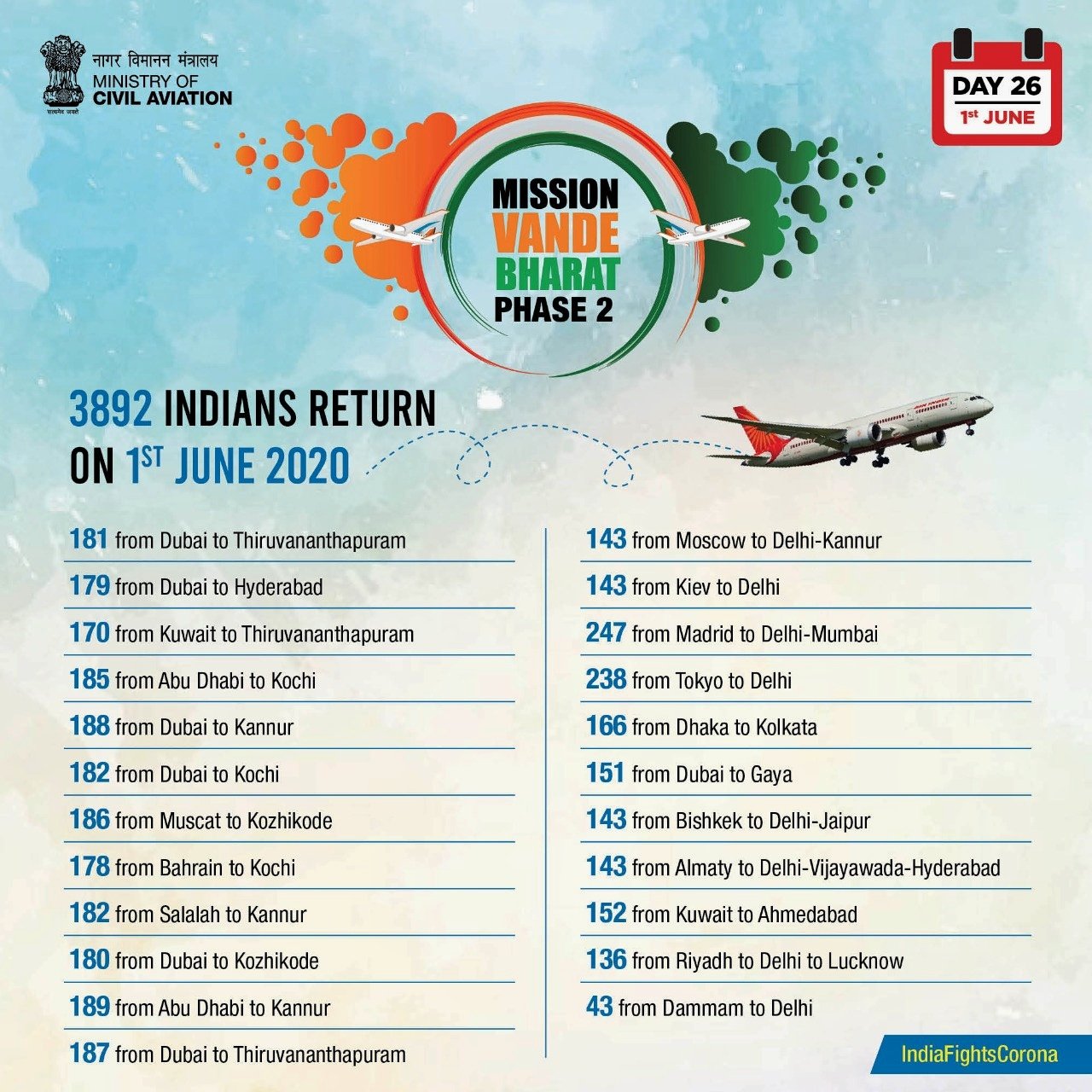 Hardeep Singh Puri On Twitter Mission Vande Bharat Continues To Help Stranded Indians 3891 People Return On 1st June From Dubai Kuwait Abu Dhabi Muscat Bahrain Salalah Moscow Kiev Madrid Tokyo Dhaka